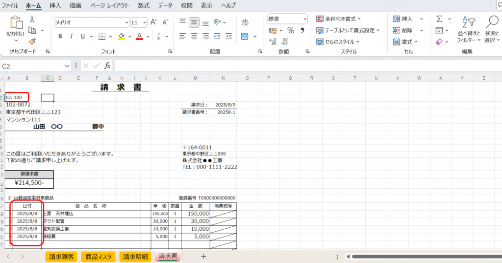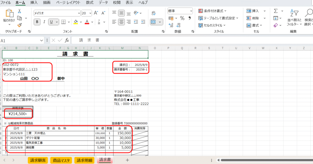 - 請求書ごとにブック内のシートや、エクセルファイルそのものは増やしたくない
