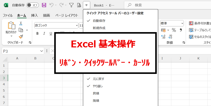 リボン表示の変更やクイックアクセスツールバーの設定、エンター後のカーソル移動の変更方法は、一度知ってしまえば期間が空いても何かあった気がする…と記憶に残ってくるはずです。