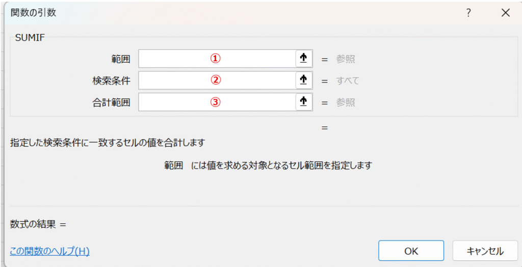 今回は関数(ダイアログボックス)の出し方については触れません。